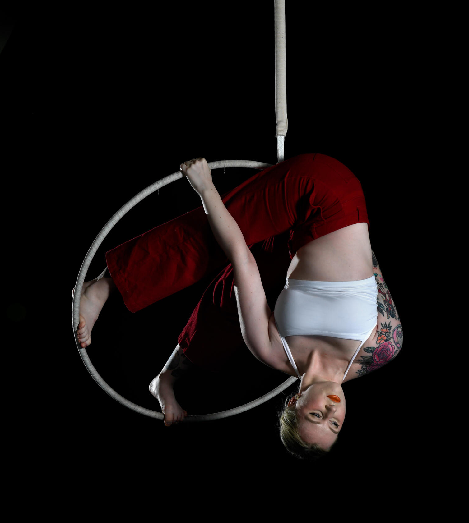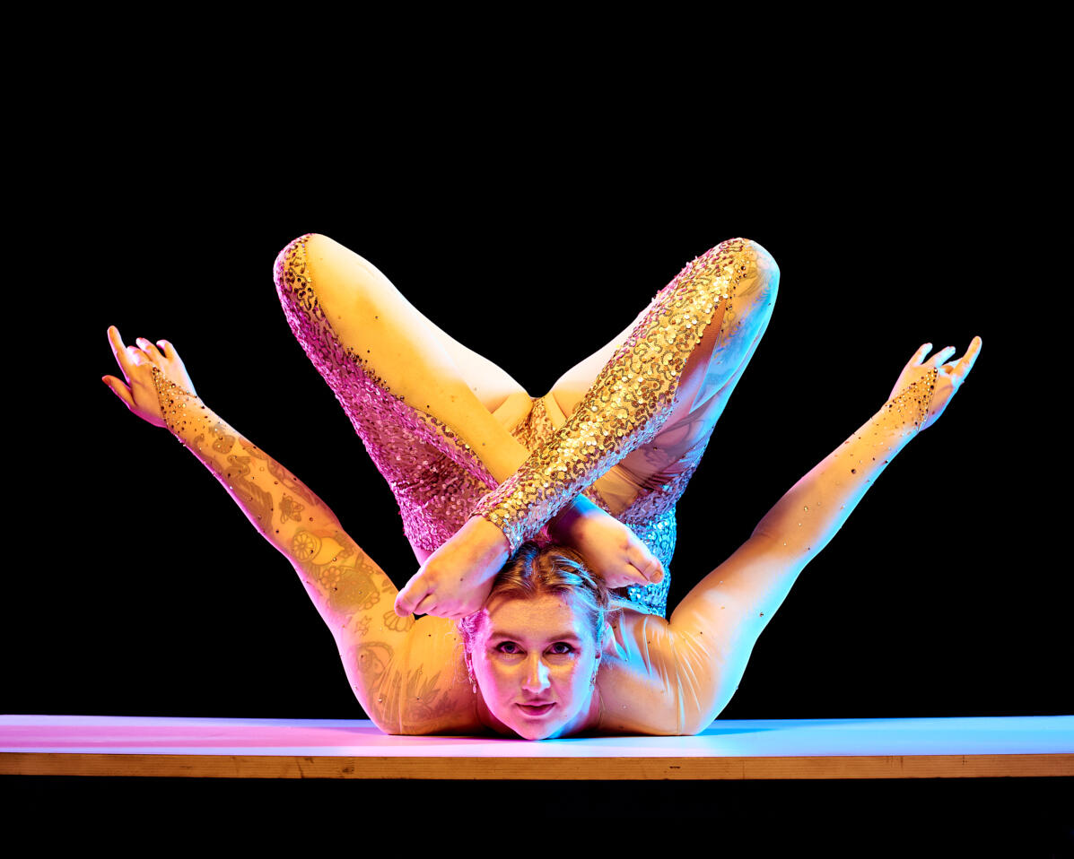 Ellie is a circus artist based in Melbourne, Australia, specialising in contortion and aerial hoop. Ellie tried to branch out to other circus disciplines but found she just wanted to spend all of her time doing two things… so she got really good at those two things.Ellie fell into circus in 2018 through adult community aerial classes and very quickly found a bizarre talent for folding herself in half. Since then she has trained with master contortion trainers Serchmaa Bayamba and Soliana Ersie. Ellie’s first circus love is aerial hoop, her aerial style is dynamic, bouncy and fun and she loves to spin so fast it makes you feel a little ill, all done while smiling from ear to ear.